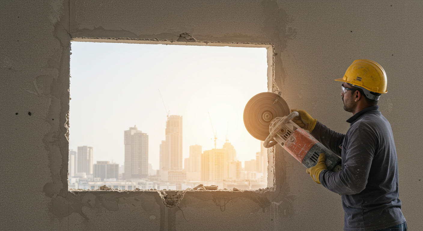 قص الخرسانة: من 30 دقيقة لساعتين حسب السمك والطول.